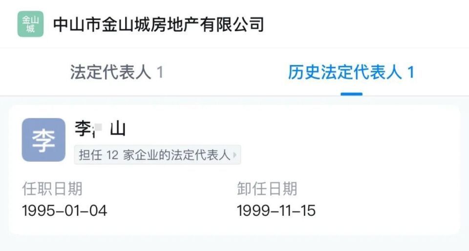 天眼查显示,中山市金山城房地产有限公司的法定代表人与历史法定代表人均姓李。该公司历史限制消费令共13份,涉案总金额3254.2万。其中,仅(2016)粤2071执8948号执行案件,限制法定代表人为“梁女士”,涉案金额8141元。